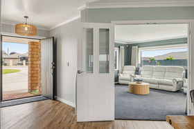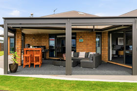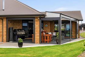 A dream lifestyle awaits one fortunate family who love to hang out in the wide-open spaces. This fully renovated single level brick and tile home offers an upscaled ambiance social folks will be proud to share with friends and relations. The 2522 sqm (approx.) property situated on the outskirts of town is contained within a fully fenced enclave shared with two neighbours. Inside, a refined monochrome palette pairs beautifully with timber-look vinyl flooring, stylish drapes, and understated mood lighting. A formal sitting room with patio access provides a peaceful media retreat while sun and space define a huge open plan family living and dining area. A heat pump and freestanding gas fireplace keep everything warm and cosy while seamless outdoor flow leads to a cleverly designed covered alfresco patio with blinds for all-seasons barbecues and entertaining. The designer kitchen has gleaming chrome fittings, stone benchtops and attractive ash grey timber grain cabinetry while the walk in pantry is efficiently tucked behind a cavity slider. Bedrooms cater to households of all ages with one close to the front door an optional home office/study. Three more bedrooms share a powder room toilet, and elegant bathroom with floating vanity, bath, and shower whilst the laundry has it's own dedicated space. The peaceful master bedroom has indoor/outdoor flow and includes ensuite and walk in wardrobe. Abundant storage and custom cabinetry are notable highlights of the 235 sqm (approx.) home where internal access double garaging is supported by colossal forecourt parking. The fully fenced grounds include two sheds"one with a lean-to"while time-saving sprinklers irrigate landscaped gardens which feature fruit trees, raised vege beds and bowling-green lawns. Close to Matamata town centre and commuting distance to Tauranga, Cambridge and Hamilton, this outstanding property is handy for good schools too.